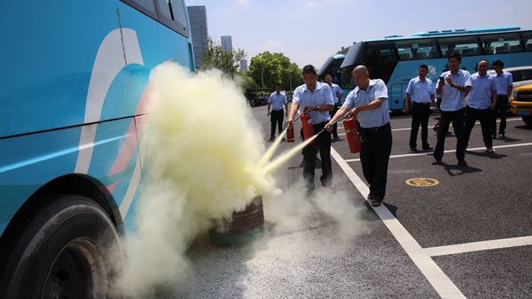 演練開始前,客運(yùn)分公司副經(jīng)理黃曉健對全體參演人員進(jìn)行了消防安全培訓(xùn),培訓(xùn)的主要內(nèi)容為滅火器的使用方法、安全錘的正確使用方式、車輛起火等突發(fā)消防事故的處理流程。演練過程模擬車輛在行進(jìn)過程中,車輛后方突發(fā)冒煙起火狀況,駕駛員按步驟進(jìn)行應(yīng)急處置。