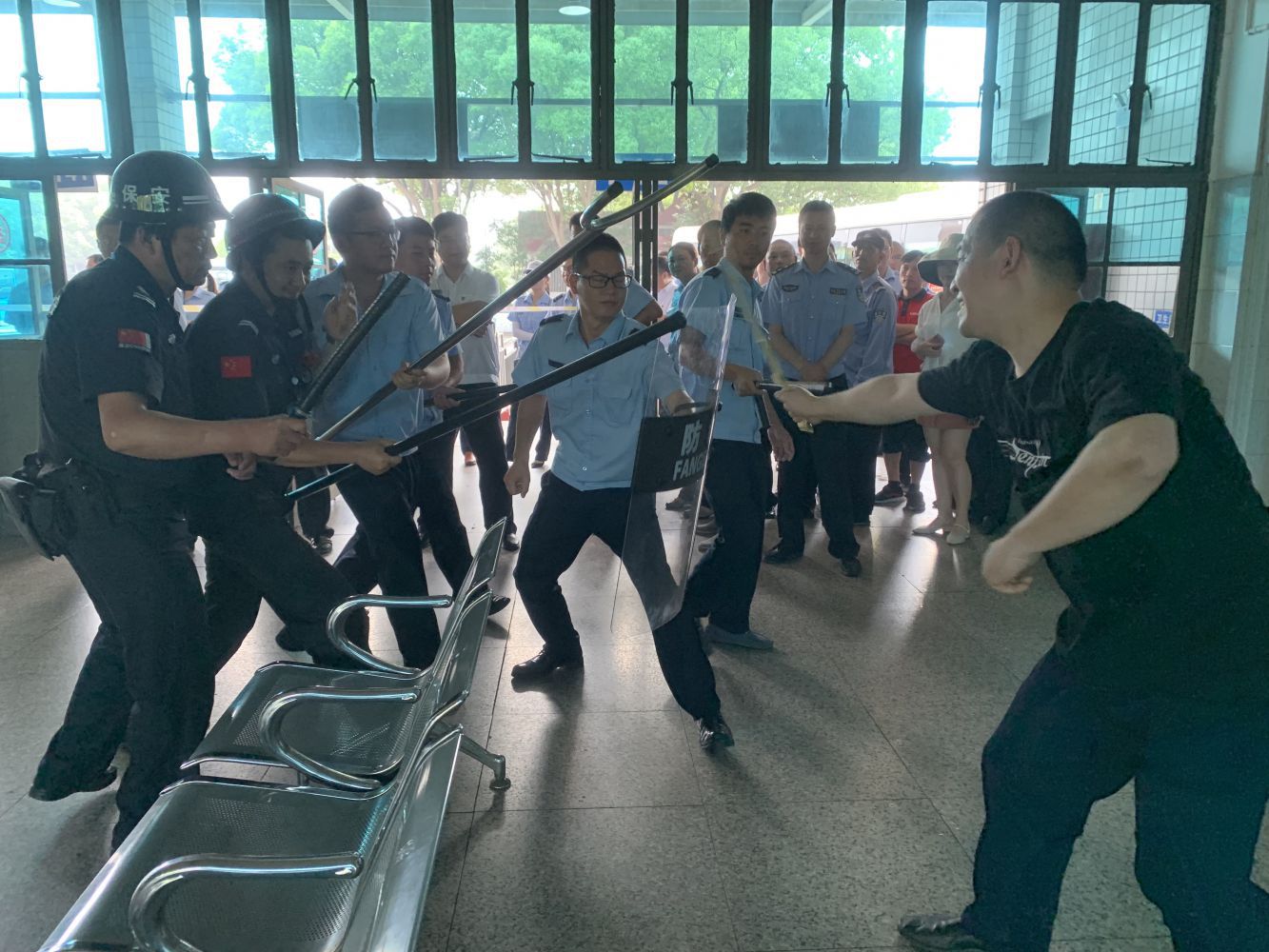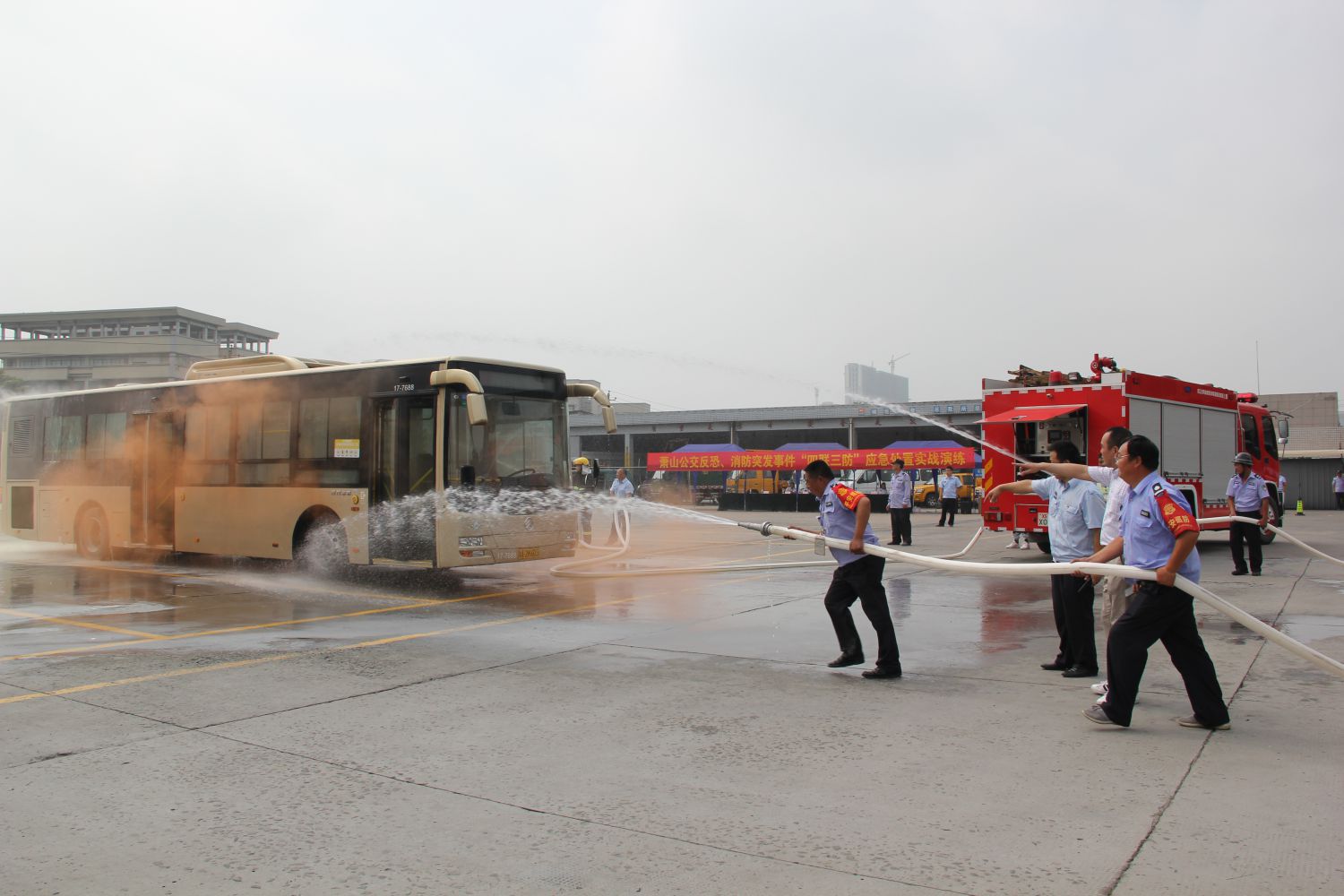 為深刻貫徹第十八個全國安全生產月“防風險、除隱患、遏事故”活動主題,進一步加強公司消防、反恐管理工作及公安機關“135”快速反應圈處置配合能力,6月27日,蕭山公交在通惠路公交站舉行反恐、消防突發事件“四聯三防”應急處置演練,區反恐大隊、區交通治安派出所領導及公司班子成員、各部門負責人、各巡防隊伍、義務消防隊伍等200余人觀摩了此次演練。
