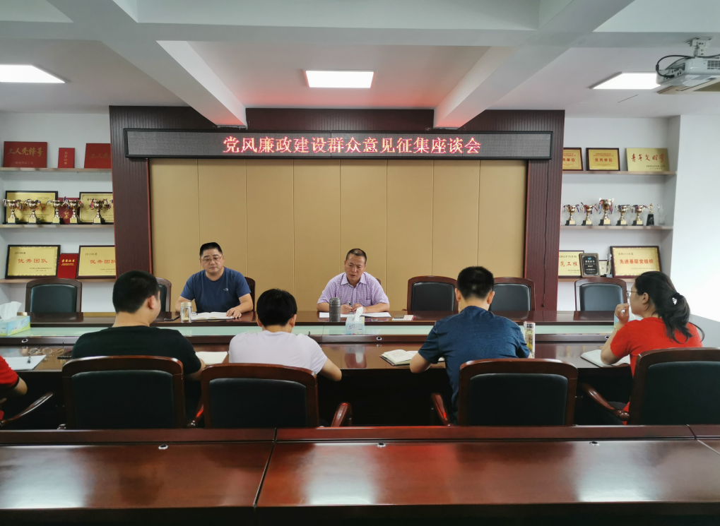 2019年7月16日,上午9點在201會議室,黨支部書記楊涌組織召開了黨風廉政建設群眾意見征集座談會。會議由紀檢組組組長龔鐵峰及公司各部室代表參加。