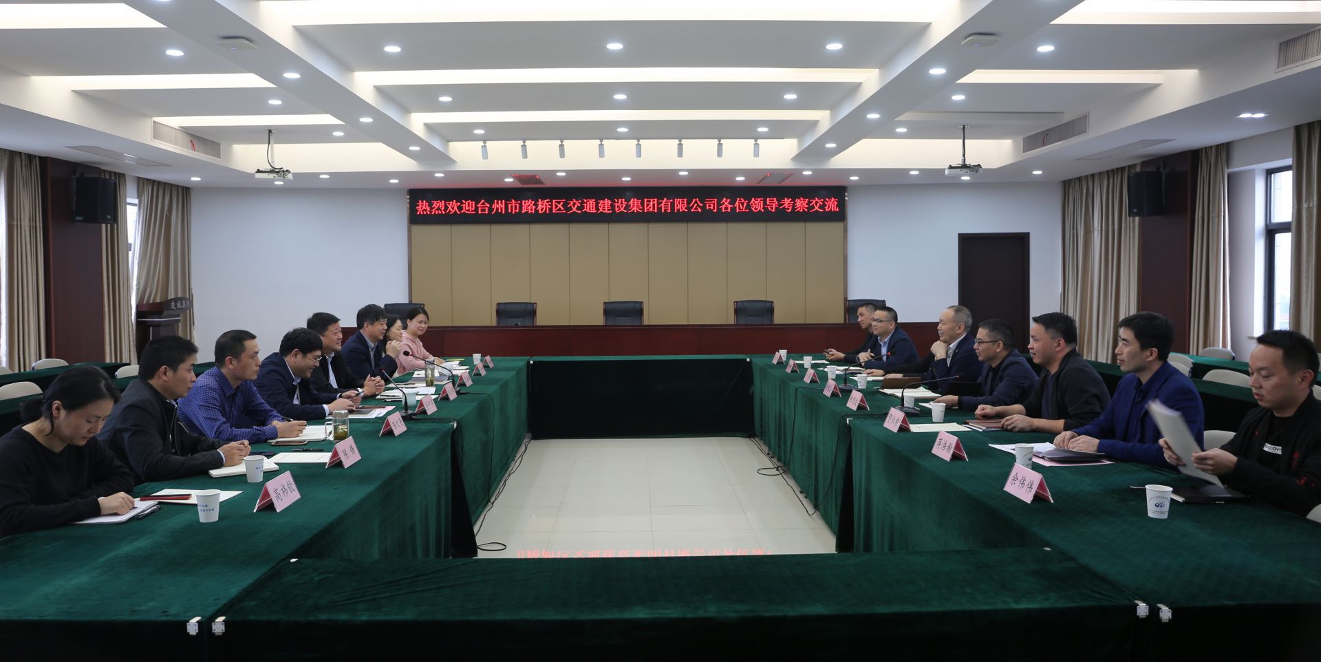11月12日下午,臺(tái)州市路橋區(qū)交通建設(shè)集團(tuán)黨委書記、董事長(zhǎng)陳根法一行到我集團(tuán)交流調(diào)研。集團(tuán)黨委書記、董事長(zhǎng)祝關(guān)翔,黨委副書記、總經(jīng)理徐寧軍,黨委副書記、副總經(jīng)理虞國(guó)燦,以及各職能部室負(fù)責(zé)人參加交流座談。