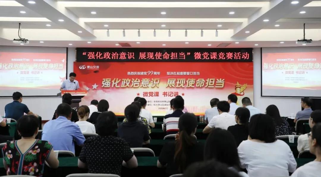 為慶祝建黨99周年,落實(shí)我區(qū)強(qiáng)基固本年活動精神,響應(yīng)全域黨建大比武部署,進(jìn)一步營造黨建領(lǐng)域比學(xué)趕超氛圍,緊緊抓牢支部書記這一黨組織的“牛鼻子”與“關(guān)鍵少數(shù)”,增強(qiáng)守初心、擔(dān)使命的思想和行動自覺,7月16日,由區(qū)委組織部主辦,蕭山交投集團(tuán)承辦的區(qū)屬國企組“微黨課·書記講”競賽活動舉行。