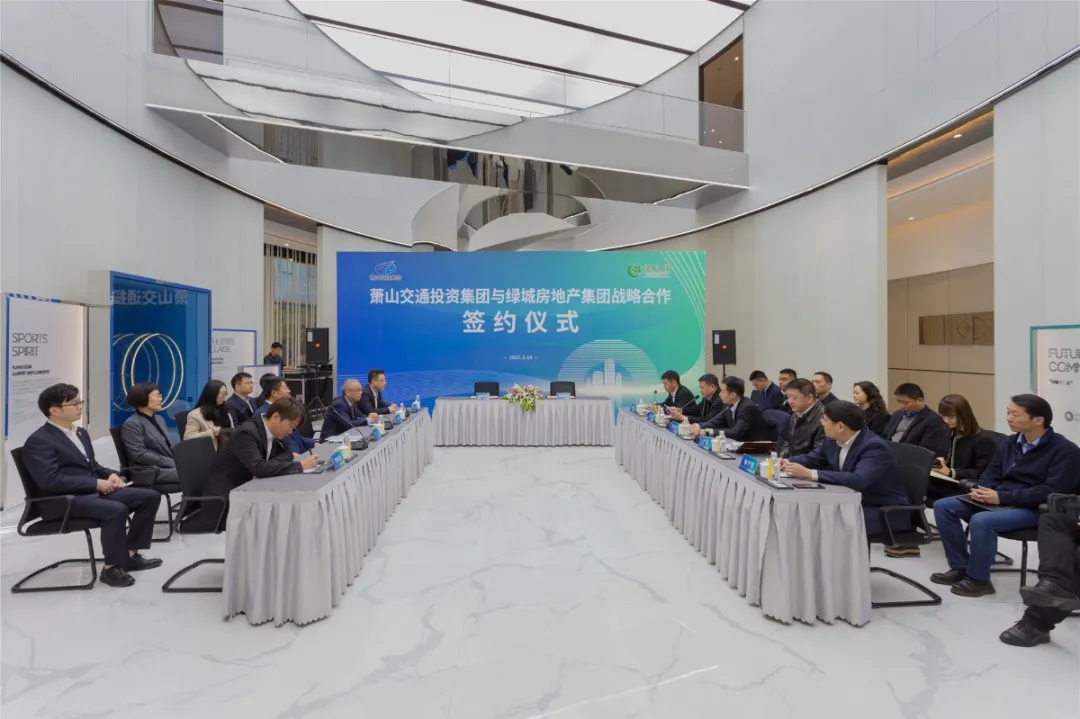 3月19日,蕭山交通投資集團有限公司與綠城房地產集團有限公司在亞運村未來社區舉行城市更新地塊戰略合作協議簽約儀式。