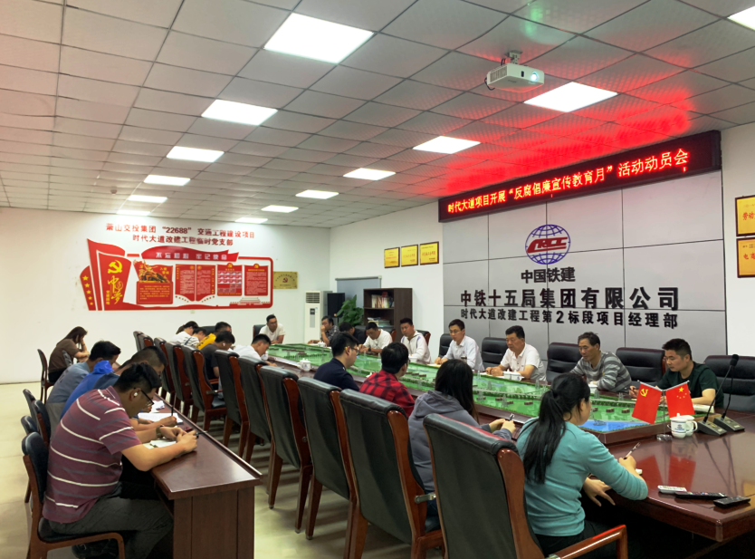 5月2日,時代大道改建工程臨時黨支部開展“反腐倡廉宣傳教育月”動員會,項目部全體職工參加,會議由項目書記馬忠玉主持。