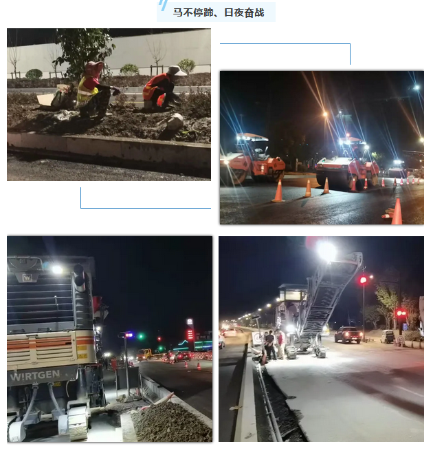 結合“千萬工程”建設現場會和項目完工驗收等時間節點,倒排施工計劃,將剩余施工量進行合理統籌,科學合理排布施工時序,盡可能推動多線、并線作戰,形成路面修復與標志標線、道路兩側路面回填與綠化移植、電力井提升與瀝青攤鋪等同步施工。