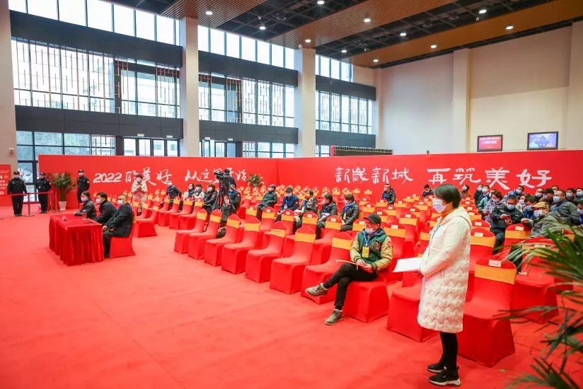 考慮近期疫情影響,為保證交房工作順利進行,工作人員提前對210余戶家庭進行分流,安排4日、5日兩天分房簽到、抽順序號,同時在臨浦體育館現場安排專人進行引導。回遷安置戶們按順序到搖號抽房現場等候,喜迎自己的新房。