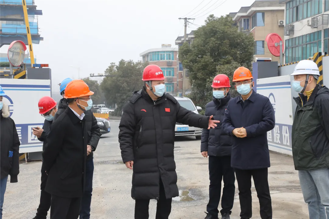 方軍一行先后來到時代大道改建工程(亞太路口、東方文化園)、時代大道南延工程(七里店村、七都溪)等施工現(xiàn)場,實地檢查地面道路、樁基施工和復工復產、疫情防控工作落實情況,并慰問一線施工人員。