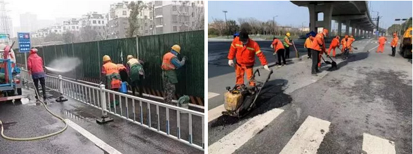 路橋工程公司項目組值班人員堅守一線,對各在建道路進行路況排查,對時代大道等進行路面修補與道路保潔,確保春節(jié)期間道路安全。