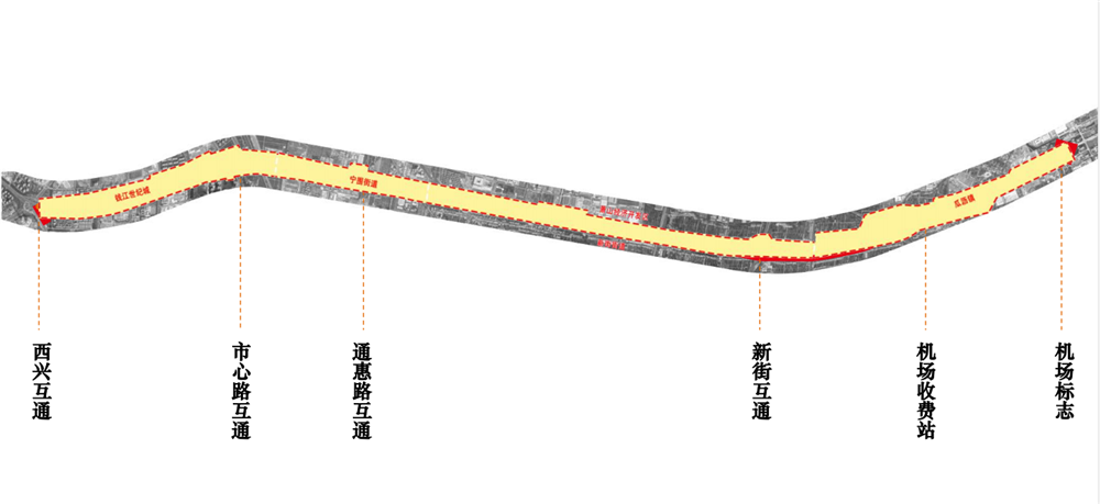 機場公路兩側(cè)景觀提升改造工程主要是對道路兩側(cè)及中分帶綠化進行提升。實施范圍為機場西大門通航路口至京嵐線路口東側(cè)利群河畔,全長約14公里,其中核心段位于空港大道至新街互通段4.9公里。