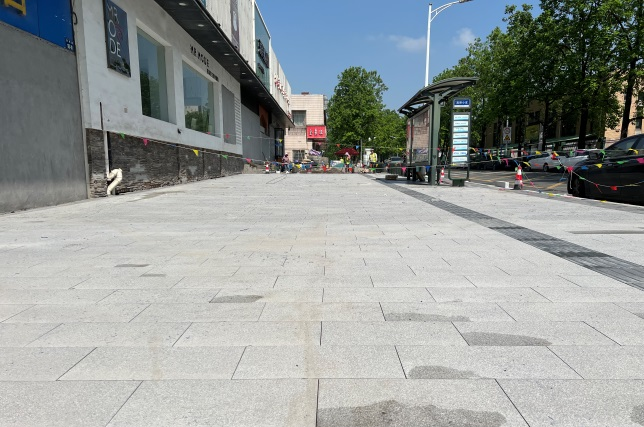 當前進度:蕭然南路、拱秀路、潘水路三條道路正在側平石及人行道板鋪設中,西河路處于行道樹補種更換階段。