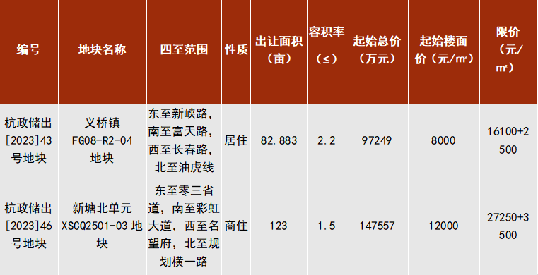 3日24日,在杭州市規(guī)劃和自然資源局蕭山分局、區(qū)住建局等相關(guān)部門的鼎力支持下,由蕭山交投集團作為做地主體負責實施開發(fā)的杭政儲出[2023]43號地塊、杭政儲出[2023]46號地塊正式在浙江省土地使用權(quán)網(wǎng)上交易系統(tǒng)中發(fā)布出讓公告。