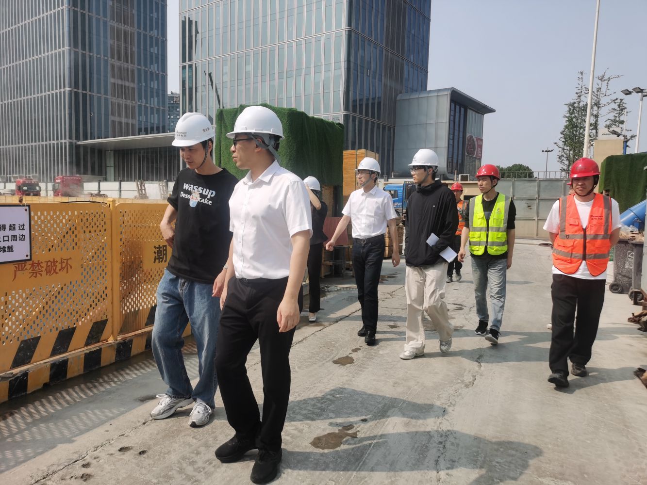 黨支部委員、副總經(jīng)理沈偉才帶隊(duì)檢查彩虹天空之城。