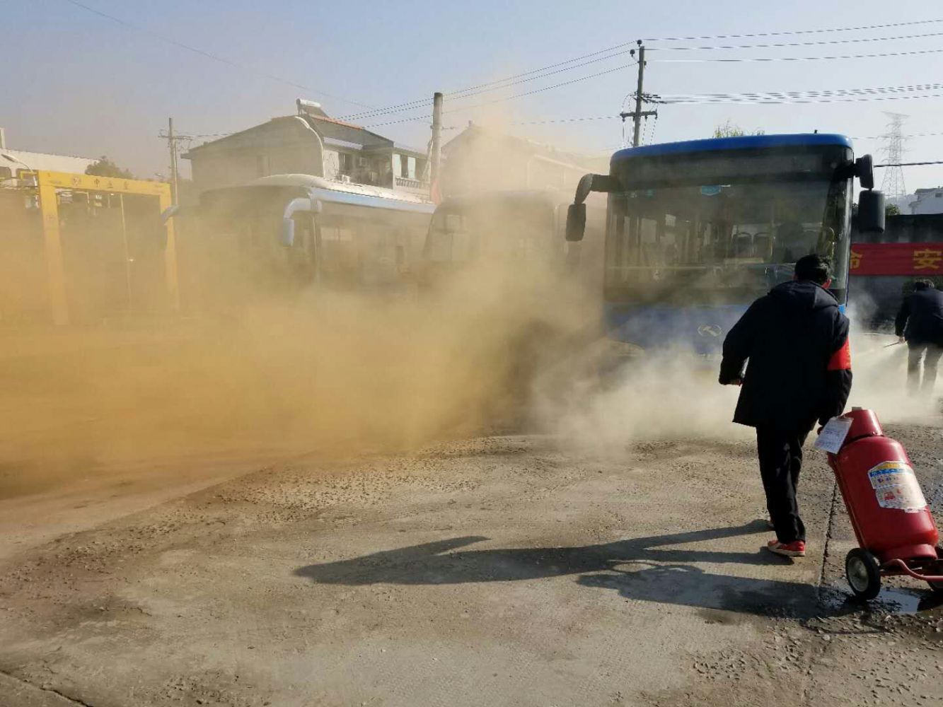 9時58分,場區啟動停車場消防應急預案。9時59分,場站負責人員發現義橋公交站東南區塊濃煙滾滾,迅速通知在場人員火警情況;9時59分,四車隊人員、六車隊人員、司機、站員、物業人員迅速趕至起火點開展滅火自救,并由付隊進行現場指揮,10時01分,在場司機對起火點周邊車輛迅速進行疏散,10時02分,消防水帶出水,10時03分“火勢”撲滅,警報解除。安保部相關負責人對本次演練進行點評,并傳達了集團安全工作精神,同時要求各兼職消防隊員多總結多反思,鞏固演練成效,持續加強訓練,確保各停車場安全穩定。