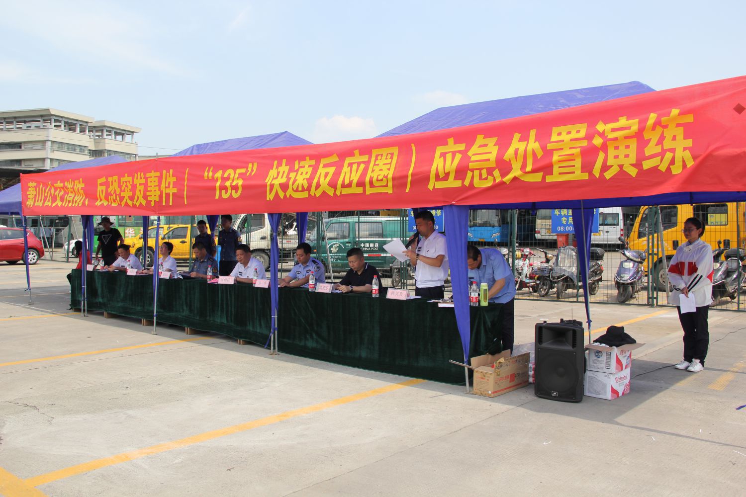 為深入貫徹第十七個全國安全生產月“生命至上,安全發展”活動主題,進一步加強公司消防、反恐安全管理處置配合工作,增強全體員工消防、反恐意識及應急處置能力。根據公安部門“四聯三防”和公司“安全生產月”活動要求。6月13日下午蕭山公交在通惠路公交站舉行“消防、反恐突發事件(“135”快速反應圈)應急處置演練”,區運輸管理處、區交通治安派出所、區消防隊等嘉賓,以及公司吳根法總經理、王黎洪書記等班子領導蒞臨指導、各部門、各車隊負責人、一線員工觀摩了此次演練。