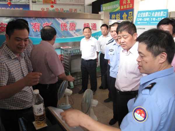 8月6日下午,區(qū)委副書記、政法委書記許岳榮一行在集團(tuán)董事長、總經(jīng)理方軍的陪同下檢查長運(yùn)公司安保工作。