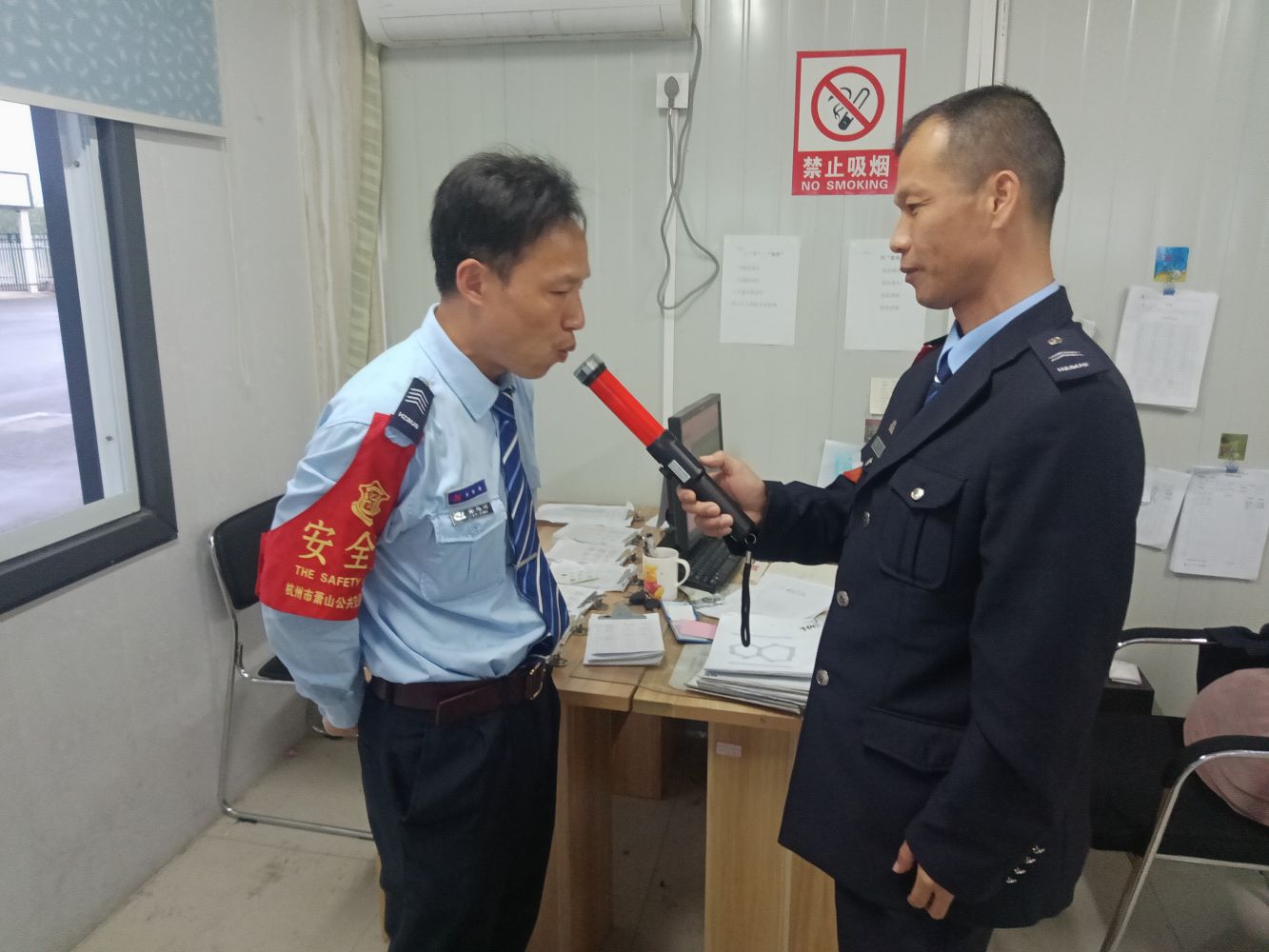開車不喝酒,酒后不開車!炎炎夏日已經來臨,下班后約上三五好友聚在一起吃點夜宵喝點酒已經成了人們的一種生活常態,但對城市公共交通安全衛士——公交司機來說,這件事確是萬萬不可的。為給乘客營造安全的出行環境,確保乘客安全出行,提高司機安全行車意識,5月15日-19日第三屆中國國際茶業博覽會舉行期間,蕭山公交始終把安全工作擺在首要位置,多措并舉加大公交駕駛員崗前酒精測試監督和抽查力度:各車隊組織安全管理人員每天清晨在各中心站點調度室內對所屬司機進行現場呼氣式酒精含量測試,,嚴查“隔夜酒”,謹防第二天“宿酒”現象,避免駕駛員疲勞駕駛,從源頭上為公交安全行車再添一道防線,保障乘客安全出行。